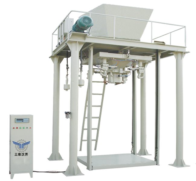 大袋包裝機的稱重方式采用毛重式稱重,不使用稱量斗,物料直接進入包裝袋內(nèi)。吊耳裝置多為4個,含有內(nèi)袋的噸包袋則需要加裝吹袋裝置,在物料進入包裝袋前,吹袋裝置先將包裝袋吹開,然后在下料,防止物料在進入包裝袋的過程中形成死角,無法滿載包裝,甚至造成內(nèi)袋撕裂;除塵機構(gòu)可使包裝機在包裝粉狀物料保證生產(chǎn)環(huán)境干凈舒適。